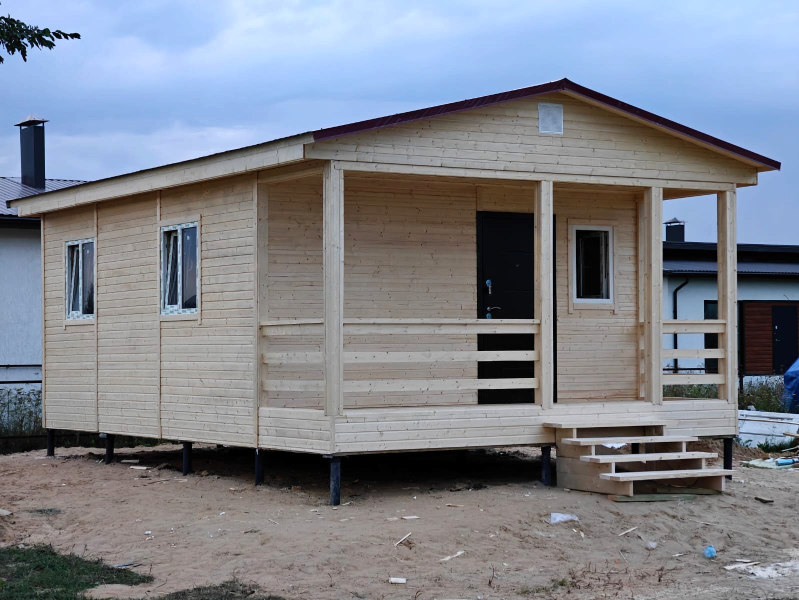 Каркасные, имитация бруса AB - снаружи, евровагонка Pin Up АБ (3 метра) - внутри. Утепление-200мм.
