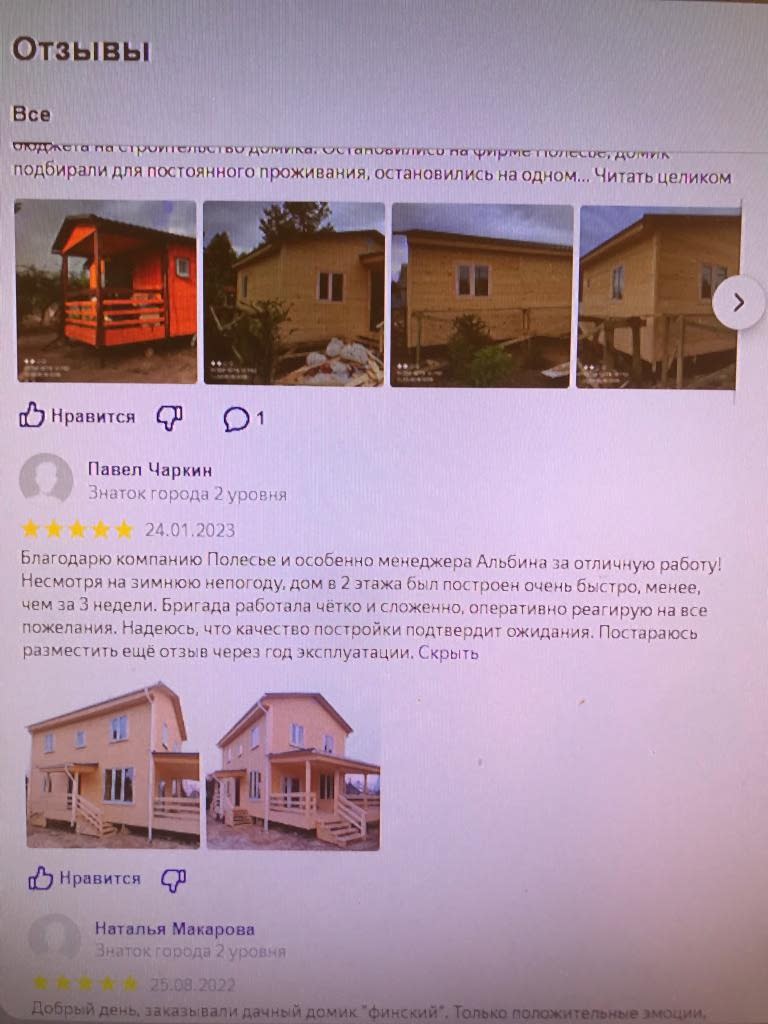 Павел: Благодарю компанию полесье и особенно менеджера Альбину за отличную работу! Несмотря на зимннюю непогоду, дом в 2 этажа был построен очень быстро, менее чем за 3 недели. Бригада работала четко и слаженно, оперативно реагирую на все пожелания. Надеюсь, что качество постройки подтвердит ожидание
